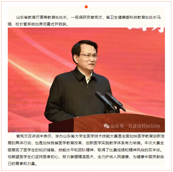 由山東省教育廳、山東省衛(wèi)生健康委員會主辦,山東第二醫(yī)科大學承辦,日進齒科材料(昆山)有限公司協(xié)辦的“2024年山東省大學生醫(yī)學技術技能大賽(口腔醫(yī)學專業(yè)賽道)”于2024年3月29日—3月31日在山東第二醫(yī)科大學如期舉辦。