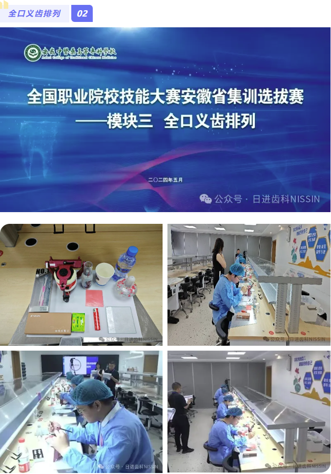 由安徽省教育廳、安徽省經(jīng)濟與信息化廳、安徽省人力資源與社會保障廳主辦,安徽中醫(yī)藥高等??茖W(xué)校承辦,日進齒科材料(昆山)有限公司技術(shù)支持的2024年全國職業(yè)院校技能大賽(高職組)安徽省選拔賽----口腔修復(fù)工藝..