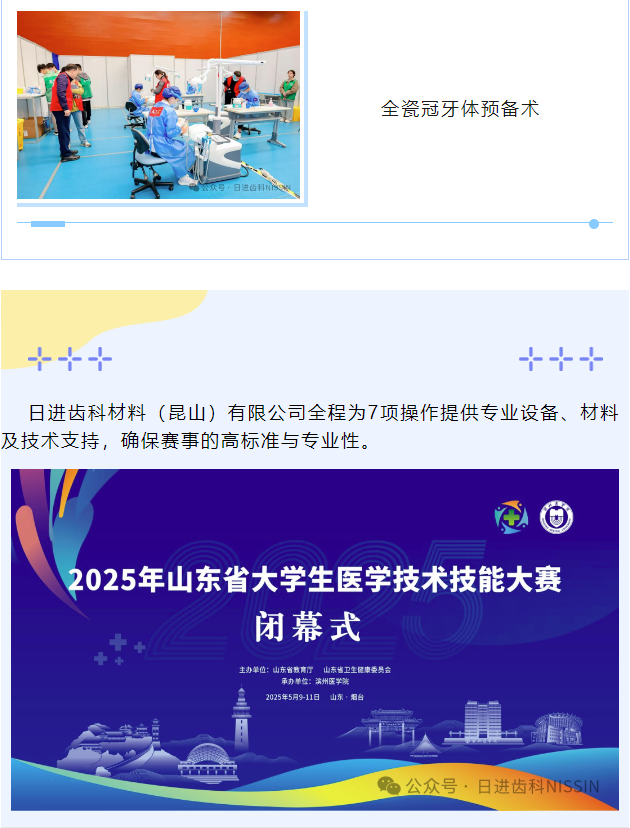 由山東省教育廳、山東省衛(wèi)生健康委員會主辦,濱州醫(yī)學(xué)院承辦,日進齒科材料(昆山)有限公司協(xié)辦的“2025年山東省大學(xué)生醫(yī)學(xué)技術(shù)技能大賽(口腔醫(yī)學(xué)專業(yè)賽道)于2025年5月9日—5月11日在山東煙臺濱州醫(yī)學(xué)院如期舉辦。